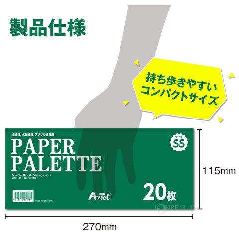 パレット 使い捨て A&B ペーパーパレット SS 115X270 20枚 絵の具 水彩 アクリル 画材 紙 おすすめ 美術 絵画教室 備品スペック
