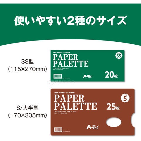 パレット 使い捨て A&B ペーパーパレット SS 115X270 20枚 絵の具 水彩 アクリル 画材 紙 おすすめ 美術 絵画教室 備品
