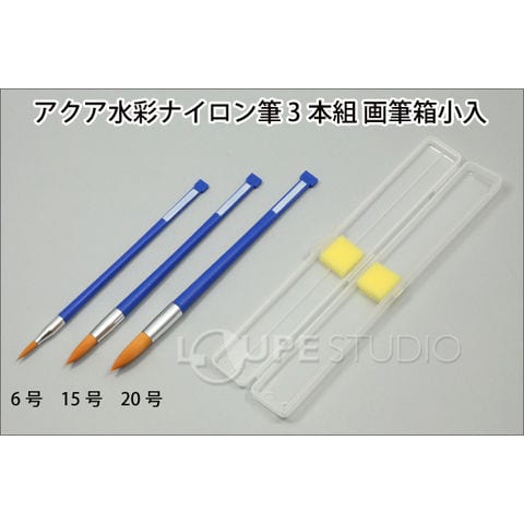 アクア水彩ナイロン筆 3本組(6・15・20号)画筆箱小入