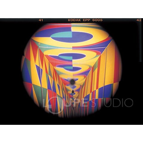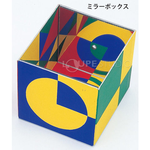 箱の3面に描かれた図形が奧に貼られた鏡の反射により無限に連続しているように見えます。