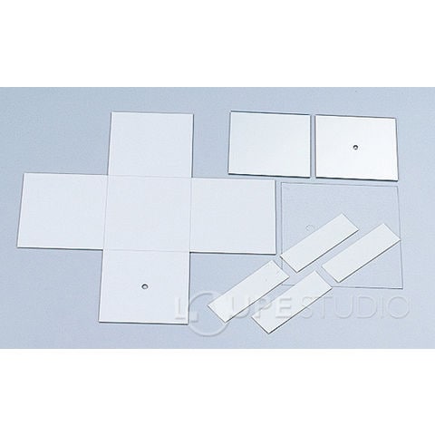 | セット内容 | 本体展開カット済(φ6mm穴あき)内面ケント紙・外面コ―ト紙(厚さ1.5mm貼合せ紙)×1 ミラー(99×99×2mm)×2 アクリル製(1枚はφ5mm穴あけ済)トレーシングペーパー(150×130mm)×1 ボックス組立て用タックテープ×4 |