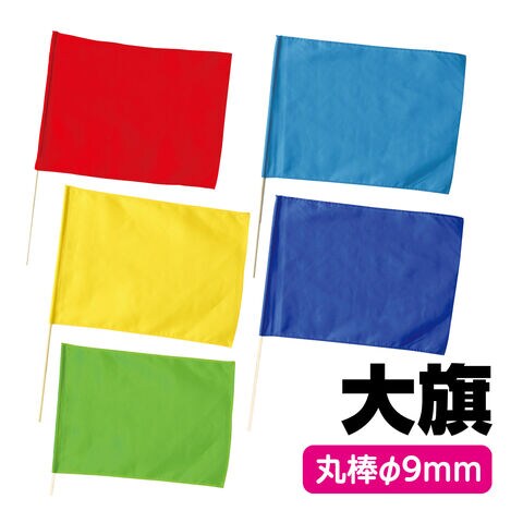 ポリエステル製カラーフラッグシリーズの大旗です。持ち手の直径が9mmのタイプです。運動会のダンスや集団行動、応援などで活躍するアイテムです。