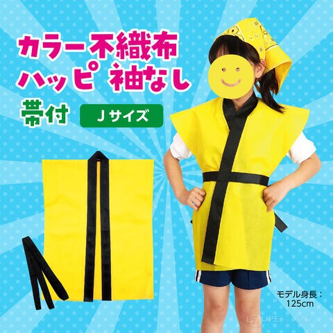 商品名カラー不織布ハッピ 袖なし (帯付) Jサイズ 幼児~小学校低学年向け