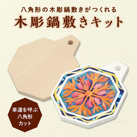 鍋敷き 木製 工作 キット 小学生 木彫八角なべしき 図工 木彫 手作り 教材 美術 絵 画材 宿題 自由研究