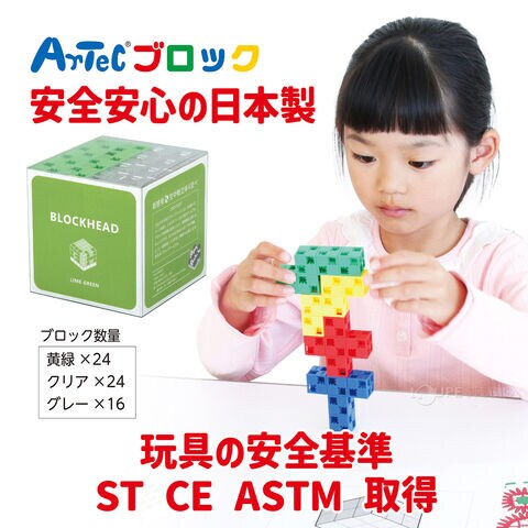 ブロック おもちゃ 新感覚 空中戦 立体4並べ BLOCKHEAD ブロックヘッド ライムグリーン アーテック 日本製 オシャレ ブロック ゲーム パズル 組み立て ビンゴ 脳トレ レゴ・レゴブロックのように遊べます 室内 クリスマスプレゼント クリスマススペック