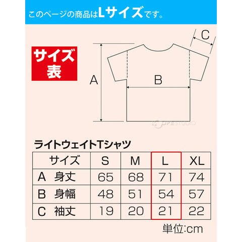 ライトウエイト Tシャツ Lサイズ 無地 半袖 メンズ イベント 体育祭 文化祭 スペック