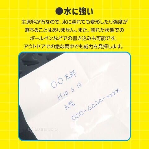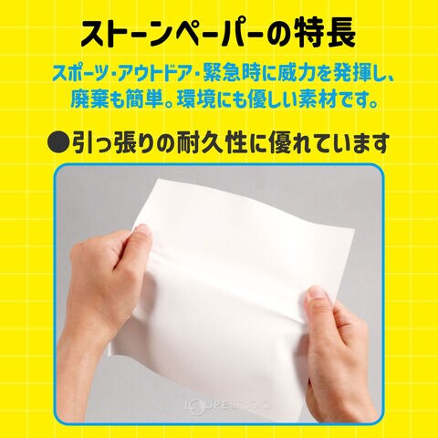 | 材質 | 炭酸カルシウム(石灰石由来)・高密度ポリエチレン |
