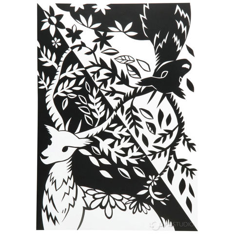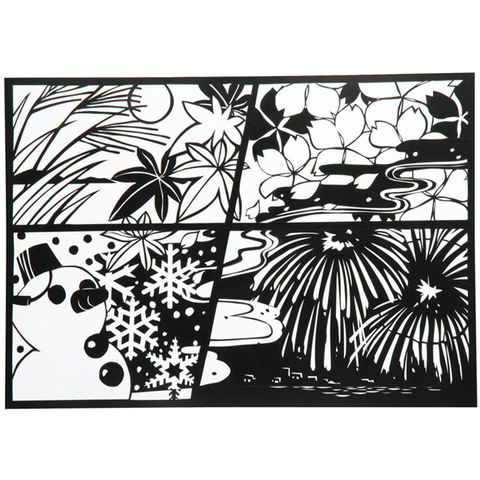 黒のビニールシートは粘着になっているので線がつながっていないきりえもできる!白いプラスチック板に黒のビニールシートを貼り合わせたもので、カッターナイフで筋を入れ、はがすだけで素晴らしい仕上がりになります。白いプラスチック板は色えんぴつ、油性ペン等で着色することができます。