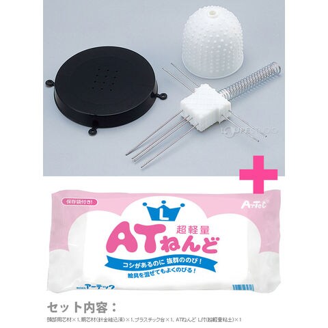 | セット内容 | 頭部用芯材×1、胴芯材(針金組込済)×1、プラスチック台×1、ATねんど L付(超軽量粘土)×1 |