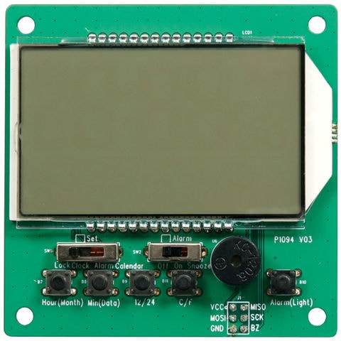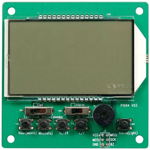 スタディーノ ミニに接続して使用できる多機能液晶時計基板●表示内容:時刻/日付/曜日/温度 ●アラーム / スヌーズ機能 ●RGB LEDバックライト ●ブザー80x80×20mm、液晶サイズ 69x42mm
