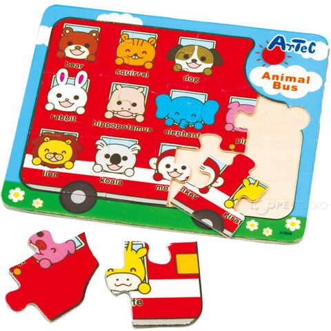 木製パズル アニマルバス キッズ 木のおもちゃ 子供 知育玩具 パズル おもちゃ 室内