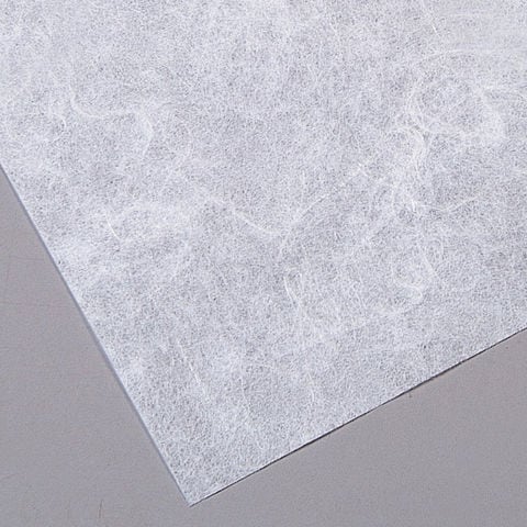楮の長い繊維を散らせて漉き込んだ和紙です。円筒形など様々な造形に適している。着色も可能。