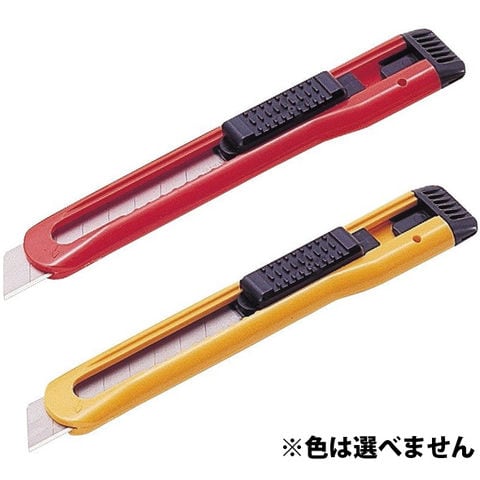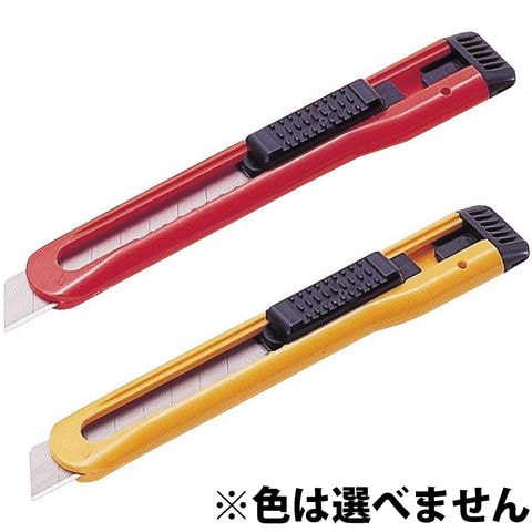 刃折り抜け落ち防止機能によりスライド部分が最後部に来ると刃折りがロックされ、刃が抜け落ちる心配がありません。※赤または黄の取り混ぜです。色は選べません。
