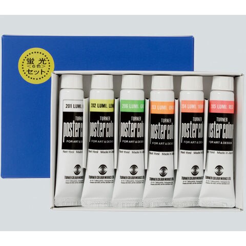 ターナー ポスターカラー PC 11ml 蛍光6色セット 美術 絵具 絵の具 画材 中学生 学校 教材 備品 工作 図工 スケッチ
