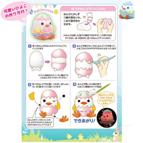 | セット内容 | ねんど(約33g)×1、ほんわかライト(AG13ボタン電池3個付※テスト電池の為、すぐに電池交換をしないといけない場合もあります。LR44ボタン電池も使用可能です。)×1、ねんどベラ×1 |