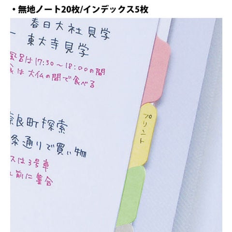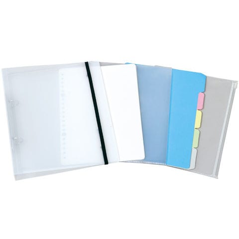 | セット内容 | 無地ノート20枚・インデックス5枚・クリアポケット10枚・チャック付ポケット1枚・2穴バインダー |