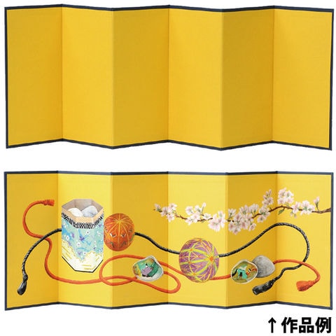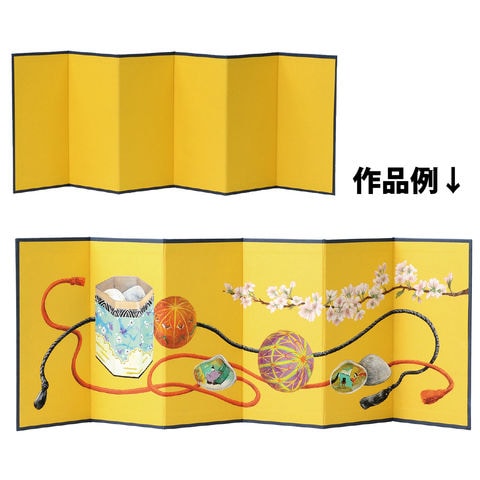 硬質の1.5mm厚ボード使用! 本格的な屏風仕上げ!アクリルガッシュやポスターカラー、墨、ペンなどの色々な画材で描くことができる!きらびやかな金の屏風!