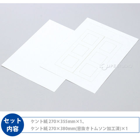 | セット内容 | ケント紙 270×355mm×1、ケント紙 270×380mm(窓抜きトムソン加工済)×1 |