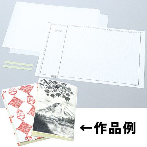 セット内容ブックカバー型紙×1、ピッチン(380×273mm)×1、両面テープ短 (10×115mm)×2、版画彩色和紙×1
