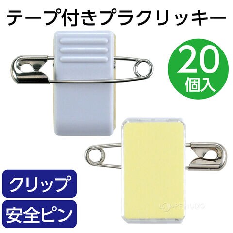 名札用クリップ 名札用安全ピン テープ付プラクリッキー20個パック 文房具
