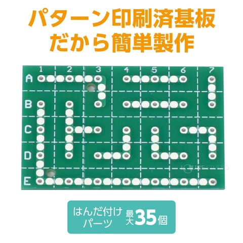 セット内容本体×1、USBケーブル×1、LED基板×1、練習用基板×1、LED×24、はんだ×1、ねじ×4、練習用導線×5、基板×1、電子パーツ×1、電線(より線)×4、電線(単線)×2、すずメッキ線×1、絶縁チューブ×1、はんだ×1、取り付けネジ×2