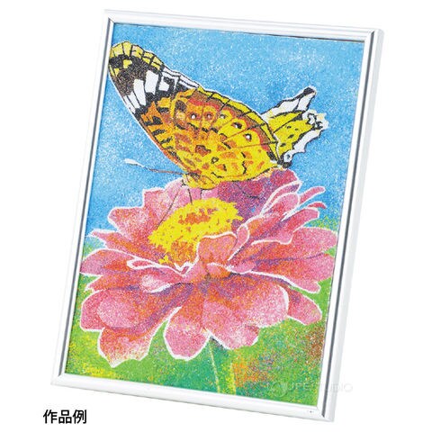 | セット内容 | 砂絵用のり付シート×1、メタリックフレーム×1、砂おとし用敷紙 はがき倍判×1、カラー砂13色組(4g×13本)×1、ミニジョウゴ×1、名前札×1 |