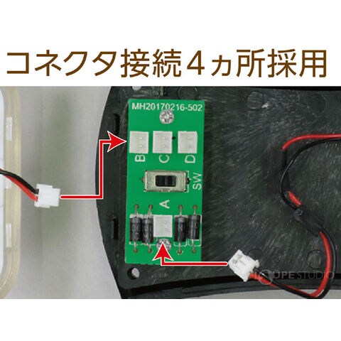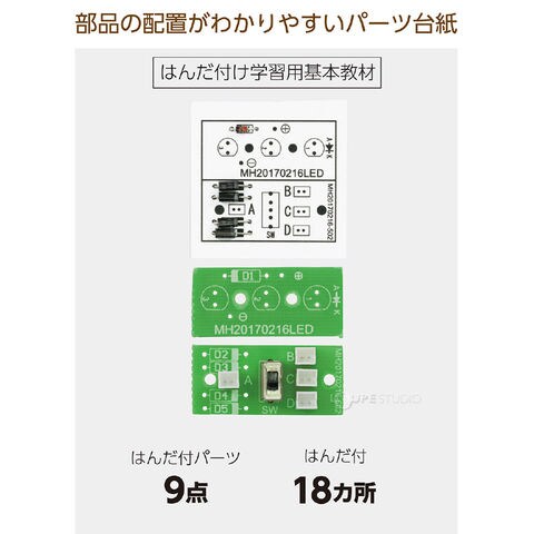 | セット内容 | レンズ×1、モーターパーツ×1、ギヤボックス×1、本体×1、ギヤ×3、スイッチカバー×1、ギヤ用軸×3、はんだ×1、電子部品台紙×1、LED基板×1、スイッチ基板×1、グリス×1、リチウムイオン電池×1、LED基板用導線×1、LED×3、本体用ネジ(ネジ長)×4、基板用ネジ(ネジ短)×4 |
