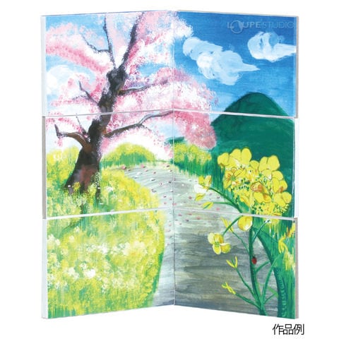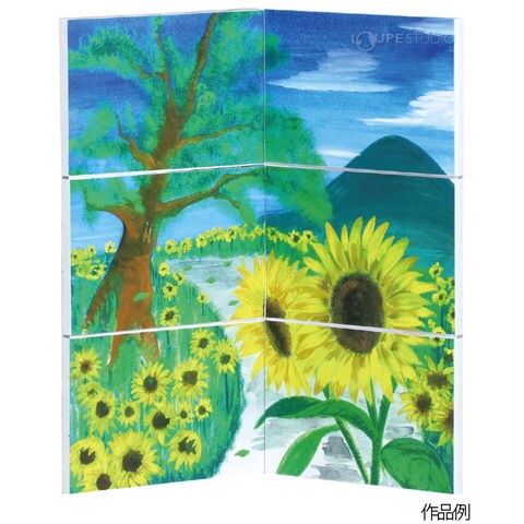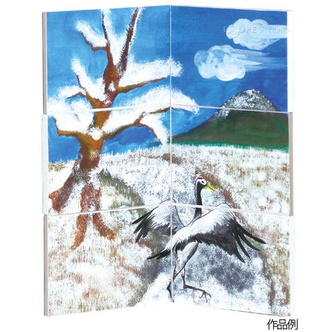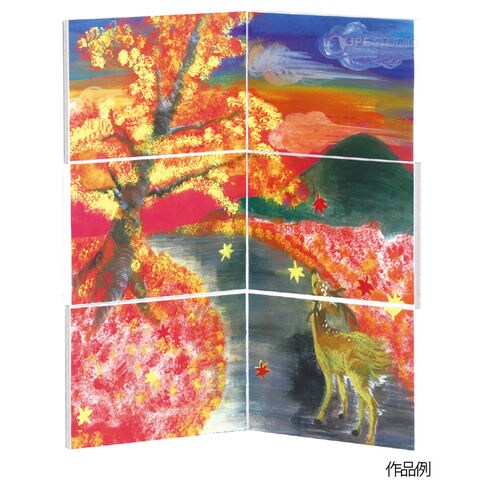 パタパタと屏風をめくると絵が4面変わる不思議な屏風ポスターカラー、アクリルガッシュ、色鉛筆、ペンなどのいろいろな画材で着色できます。