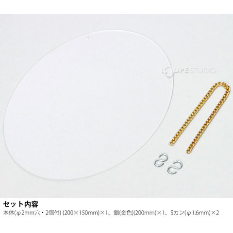 セット内容本体(φ2mm穴・2個付) (200×150mm)×1、鎖(金色)(200mm)×1、Sカン(φ1.6mm)×2
