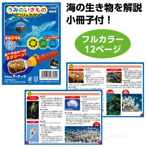 海の生き物の写真24枚! フィルム3つ付うみのいきもののことを楽しく学習できる小冊子付!★電池内蔵