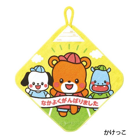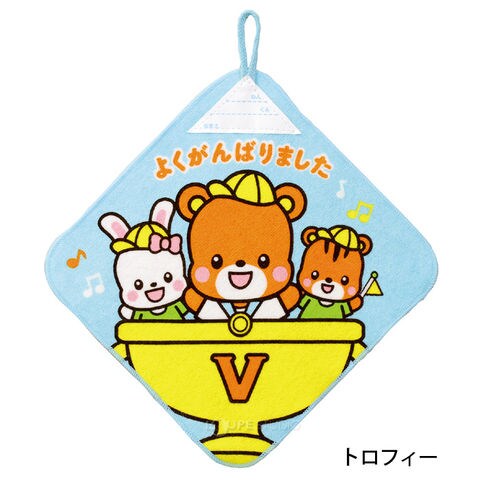 ループと名前タグ付でなくしにくい!動物たちがトロフィーに入ったかわいいタオル!名前タグ付