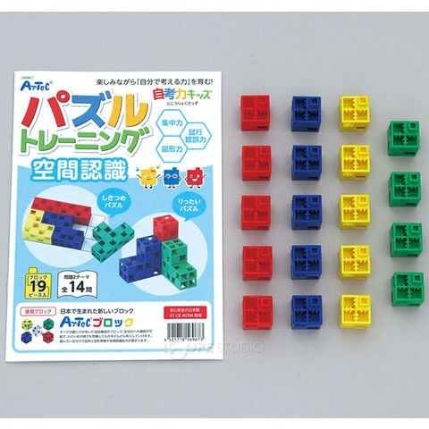 自考力キッズ パズルトレーニング 空間認識 鍛える 立体 ゲーム アーテックブロック おもちゃ 遊び 幼児 小学生 教育 学習 勉強 考える力 知育玩具 レゴ・レゴブロックのように遊べます 室内