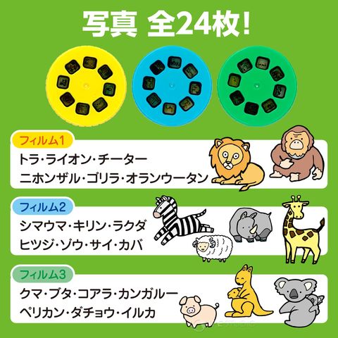 動物の写真24枚! フィルム3つ付動物のことを楽しく学習できる小冊子付!