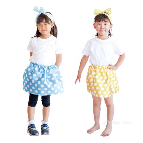 水玉ソフトサテンスカート 黄 水色 ドット 学芸会 衣装 幼児 小学生 保育園 幼稚園 子供 運動会 文化祭 演劇 発表会 お遊戯会 キッズ ダンス 女の子スペック