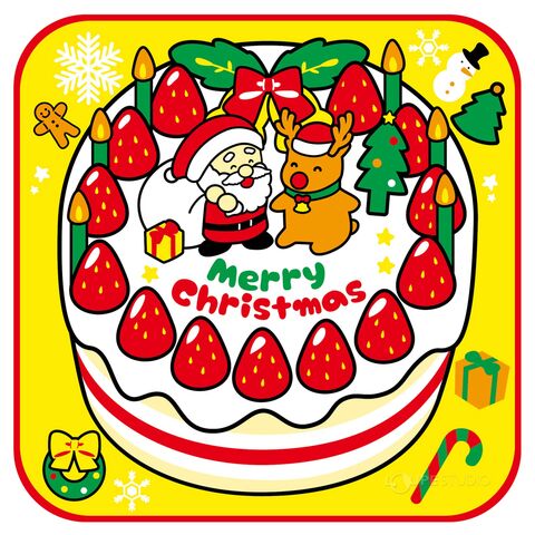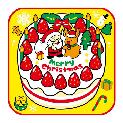 クリスマスケーキが描かれたかわいいタオルハンカチです。クリスマスのプレゼントにおすすめです。綿100%。