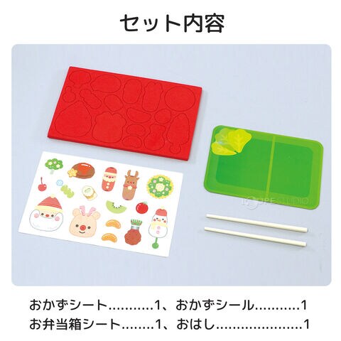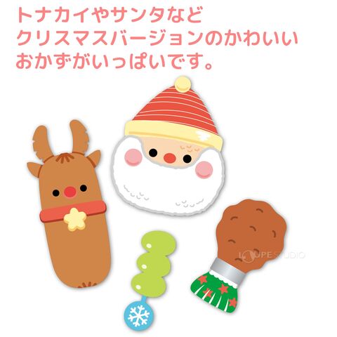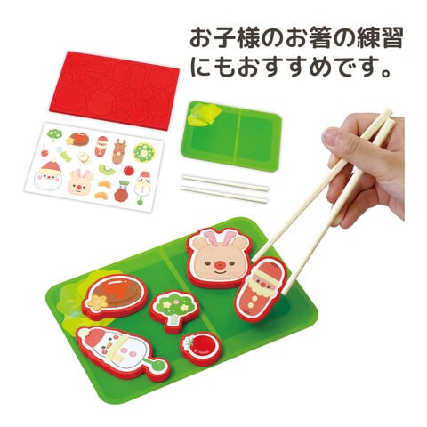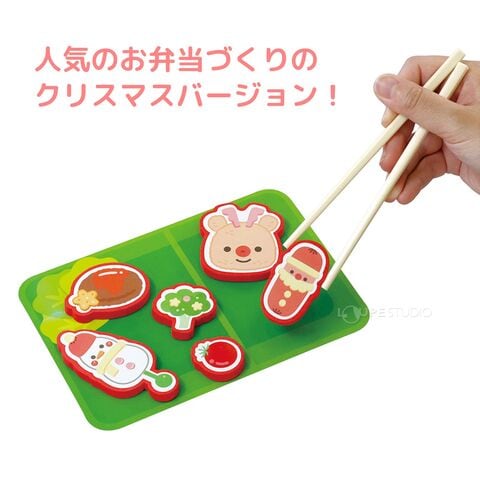 お箸を使っておかずをつめて、自分だけのお弁当作りができるおもちゃです。トナカイやサンタなどクリスマスバージョンのかわいいおかずがいっぱいです。お子様のお箸の練習にもおすすめです。