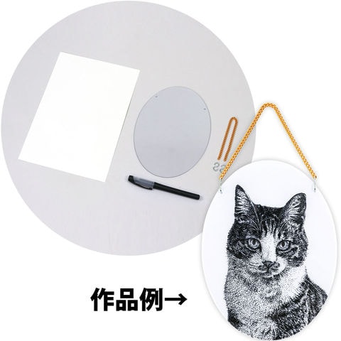 | セット部品 | アートウォールボード(φ2mm 穴2か所 200×150mm)×1、くさり 200mm×1、Sカン φ1.6mm×2、白上質紙タックシート(B5 182×257mm)×1、油性ミリペン0.4mm 黒×1 |