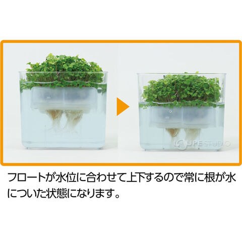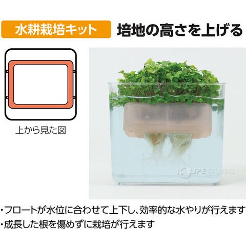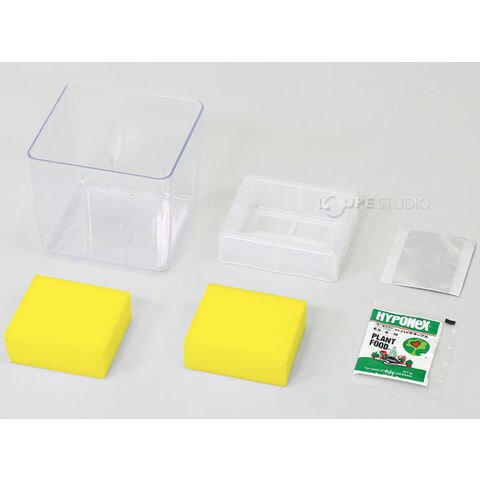 | セット部品 | 水耕栽培ユニット容器×1、水耕栽培ユニットフロート×1、スポンジ×2、水耕栽培用種×1、ハイポネックス 5g×1、ワークシート×1 |