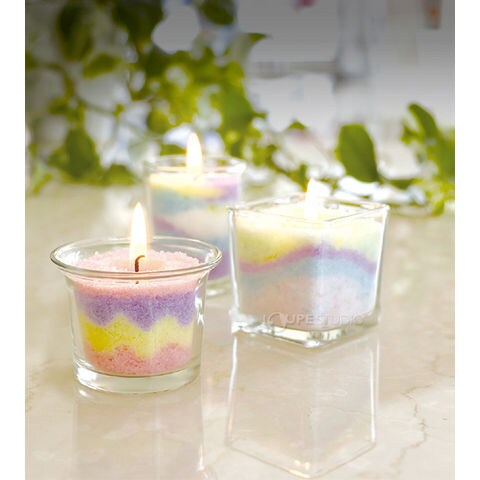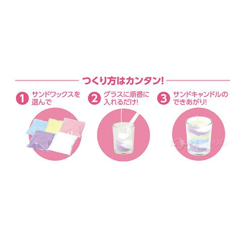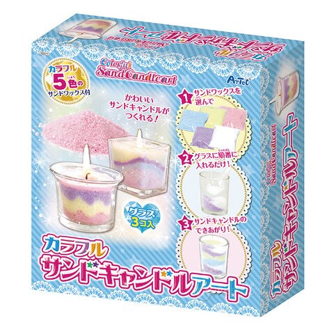 | セット部品 | グラス×3、サンドワックス(青、黄、ピンク、紫、白)各50g×5、キャンドル芯×3、デザイン棒×1、説明書×1 |