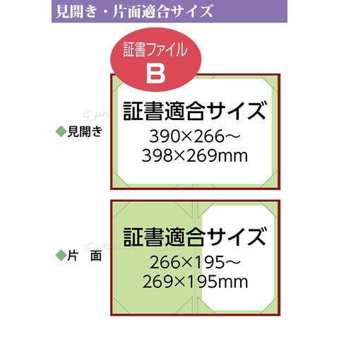 | 証書適合サイズ | 全面使用時:390×266~398×269mm 片面使用時:266×195~269×195mm |