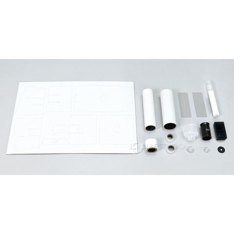 | セット内容 | レンズおさえ×2、レンズスリーブ×1、接眼筒×1、本体×1、対物レンズ2種×各1、接眼レンズ×1、しゃ光パーツ×1、土台用台紙×1、連結パーツ×1、LEDライト×1、工作ボンド×1、スライドグラス×2 |