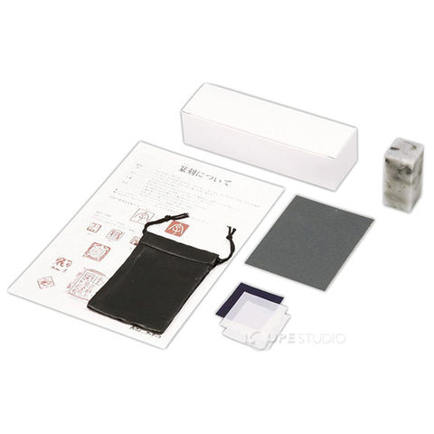 | セット内容 | 遼凍石×1、てん刻字体説明書×1、レザー調小袋×1、耐水ペーパー×1、トレーシングペーパー×1、カーボン紙×1、つやだし用トレーシングペーパー×1 |