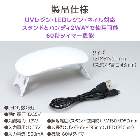 レジン UVライト 紫外線ライト UV-LED ハンディライト レジン用 60秒タイマー付スペック