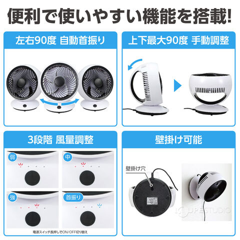サーキュレーター 左右首振り 壁掛け 卓上 扇風機 冷風機 循環扇 送風機 換気 おしゃれ スペック