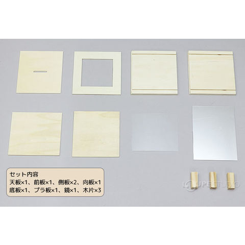| セット内容 | 天板×1、前板×1、側板×2、向板×1、底板×1、プラ板×1、鏡×1、木片×3 |