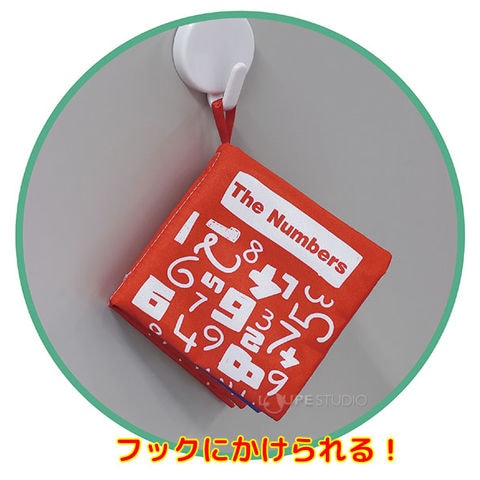 触るとカシャカシャ音が鳴るバスブックで数字の学習!フックにかけられる!