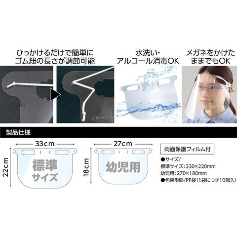 フェイスシールド クリアシート 幼児用[10枚組] 感染対策 フィルム 目立たない 医療 保護面 ウイルス対策 ウイルス 飛沫 感染 予防 マスク 子供スペック