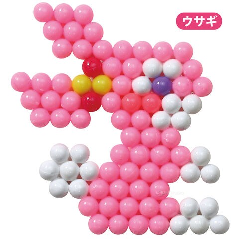 水でくっつく不思議なビーズで5種類の作品をつくろう5作品の作例集付。