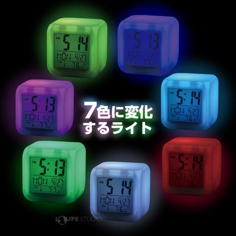 ライトが7色に変化する!8種のアラーム音付のデジタル置き時計です。
