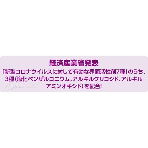 | 材質 | 成分/除菌剤(※1)、界面活性剤(※2)、精製水、クエン酸三ナトリウム、ハッカ油 ※1 第四級アンモニウム塩(塩化ベンザルコニウム) ※2 アルキルグリコシド、アルキルアミンオキシド(洗浄成分) |
